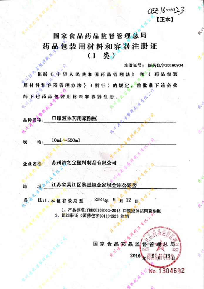 藥包材注冊(cè)證-PET瓶